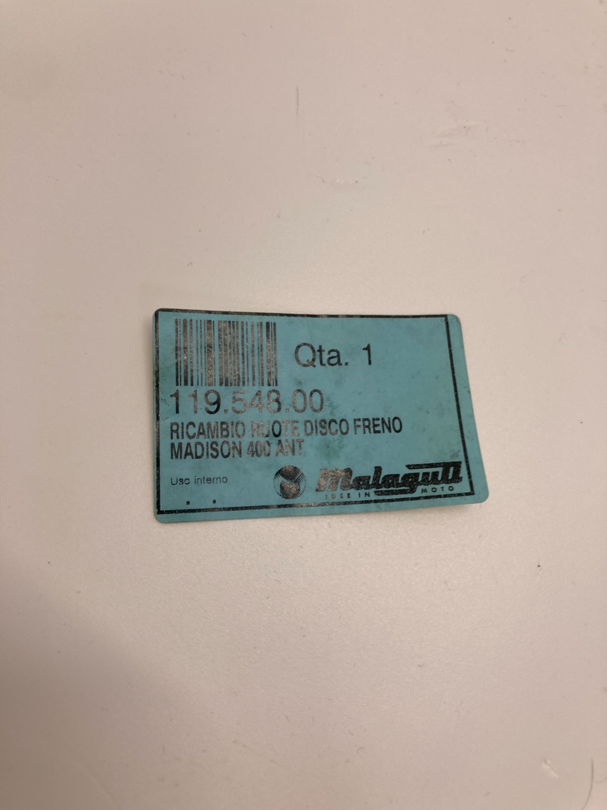 DISCO FRENO ANTERIORE SINISTRO ORIGINALE USATO PER MALAGUTI:MADISON 400 DAL 2002 AL 2004 PASSWORD 250 DAL 2005 AL 2008 SPIDERMAY 500 DAL 2004 AL 2008CODICE. 11961800020255LUCA 3333477723.SYSTEM BIKE srl via Ariosto 57/A 20089 Rozzano MilanoPhone +39 (0)2 8259322VI RICORDIAMO CHE IN CASO DI RESTITUZIONE DELL’OGGETTO SIETE OBBLIGATI AI FINI FISCALI AD INVIARCI ANCHE LO SCONTRINO ORIGINALE.VENDIAMO RICAMBI PER MOTO ORIGINALI USATI Per conoscere la disponibilità dei nostri ricambi visitate il nostro sito oppure contattateci telefonicamente o via e-mail. www.systembike.it333 3477723 Luca (telefono o WhatsApp)info@systembike.it Copyright © SystemBike 2019Le informazioni contenute in questo messaggio e negli eventuali allegati sono da considerarsi riservati ed il loro utilizzo è consentito unicamente al destinatario ed unicamente per le finalità sopra indicate. Qualora riceveste il presente messaggio per errore e non ne siate i destinatari, Vi preghiamo di darcene notizia via e-mail, di astenervi dal consultare eventuali files allegati, di cancellare il messaggio dal Vs. sistema informatico. Costituisce comportamento contrario ai principi dettati dal D.Lg. 196/2003 il trattenere il messaggio, diffonderne il contenuto, inviarlo ad altri soggetti, eseguirne copia in tutto od in parte, l’utilizzo da parte di soggetti diversi dal destinatario e per finalità diverse da quelle sopra indicate.