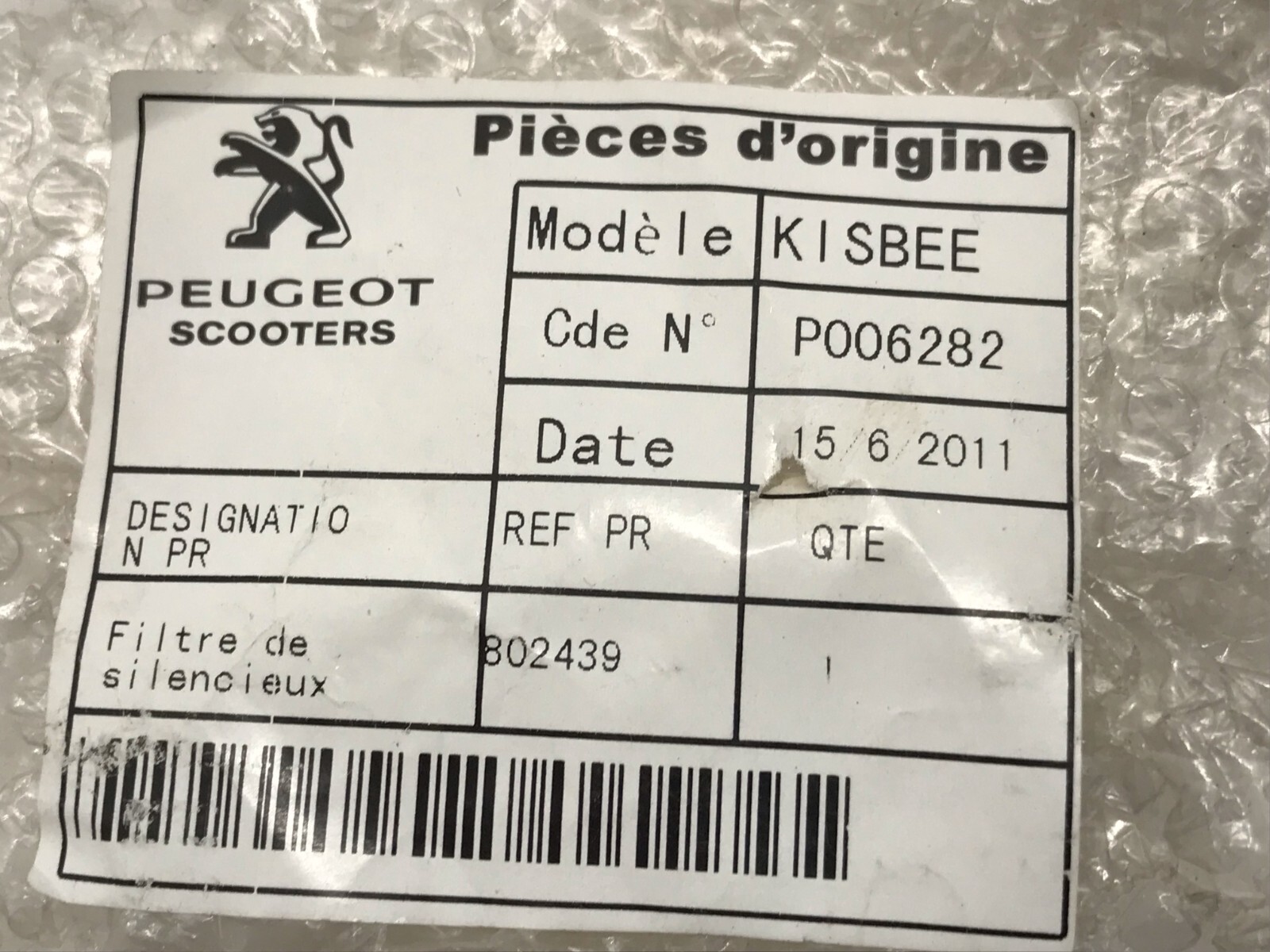 FILTRE À AIR PEUGEOT KISBEE CODE P006282 N3