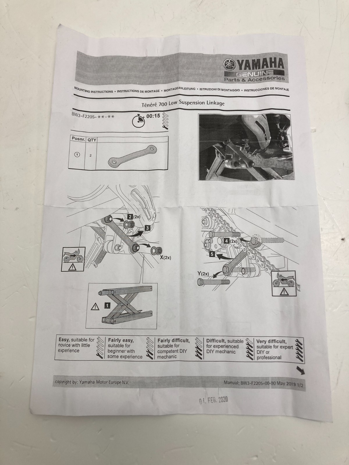 Recensisci per primo “HEBEL TIEFERLEGUNGSKIT YAMAHA TENERE 700 2019-2022 / BW3F22050000”