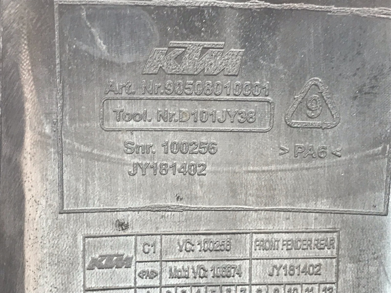 HECKTEIL DES ORIGINAL KOTFLÜGELS VORNE, DER FÜR KTM 125 DUKE VON 2017 BIS 2020 VERWENDET WURDE.