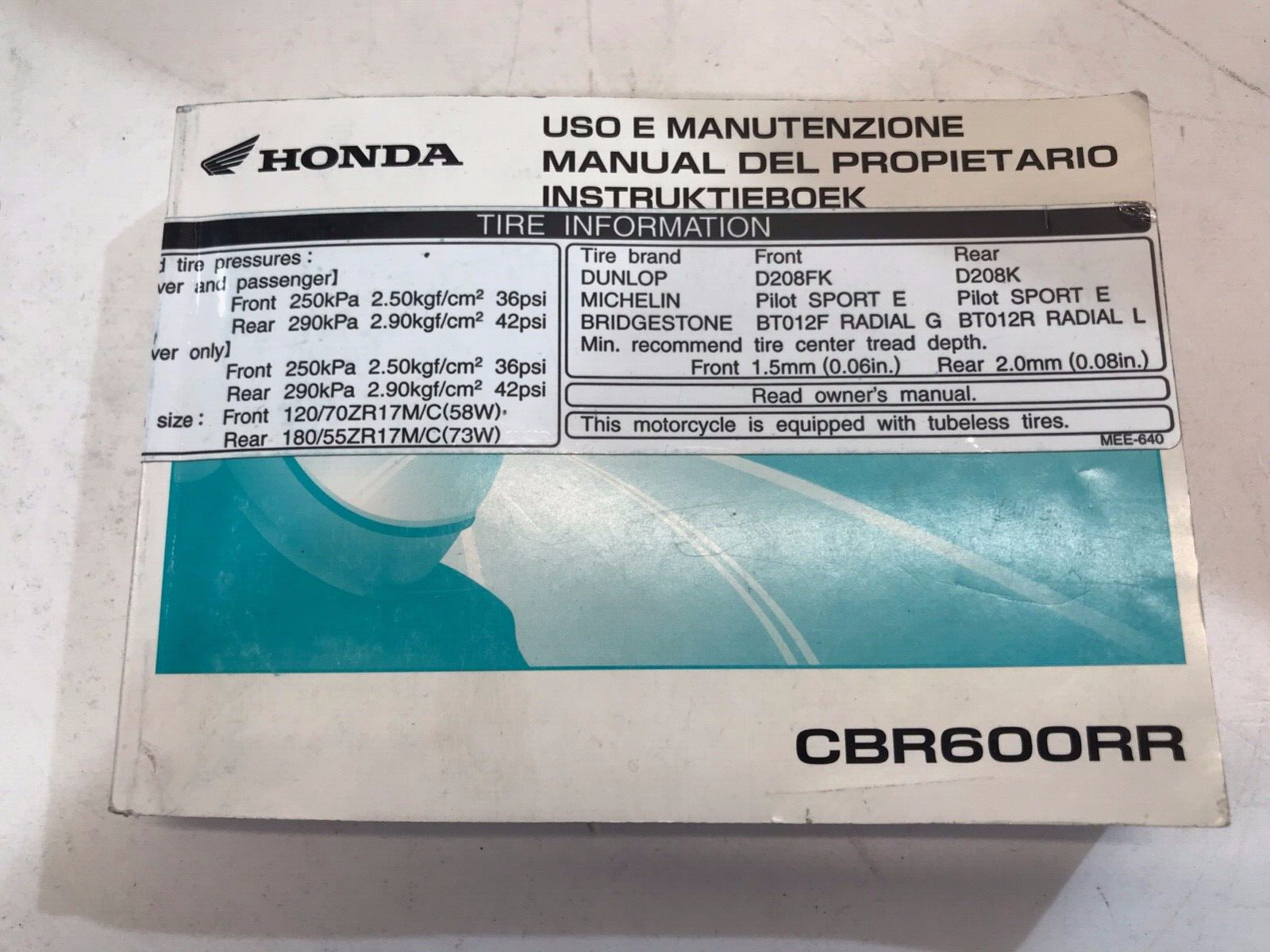 MANUALE DI USO E MANUTENZIONE ORIGINALE USATO PER HONDA CBR 600 RR DAL 2003 AL 2004.