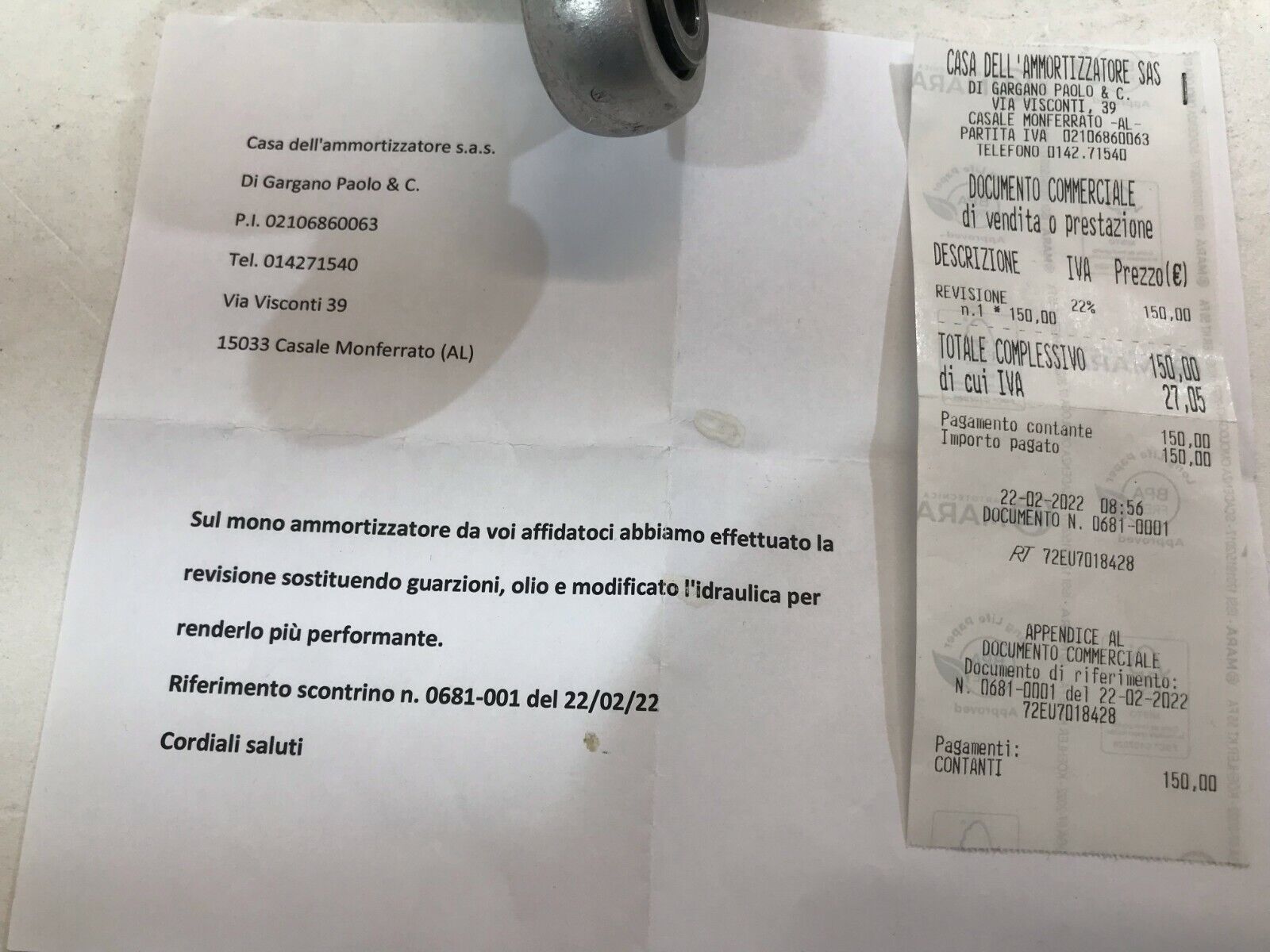IL MONO AMMORTIZZATORE E’ STATO COMPLETAMENTE REVISIONATO.