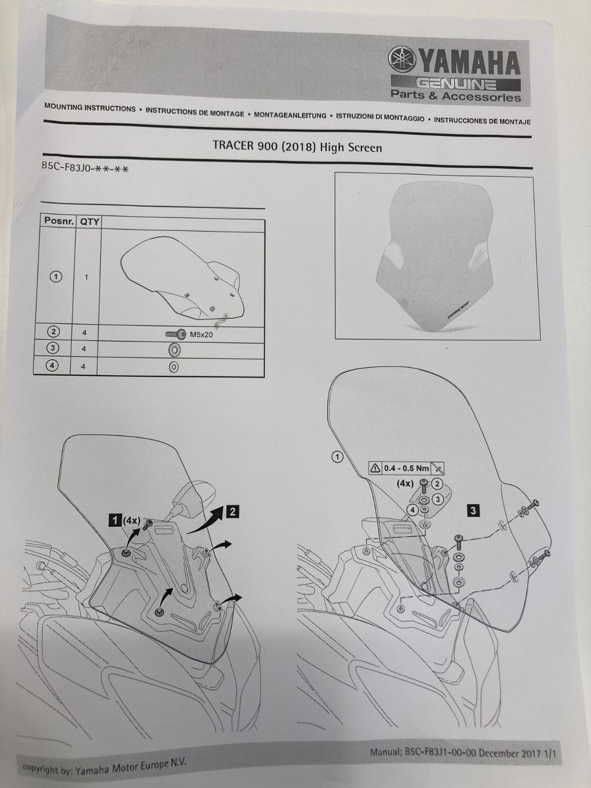 PARABREZZA SCHERMO ALTO YAMAHA TRACER 900 2018-2020 / B5CF83J000