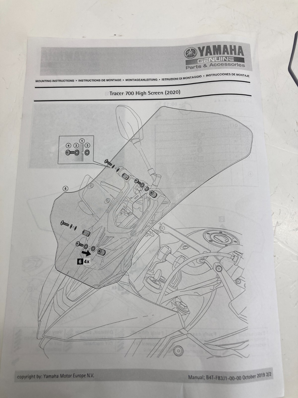 YAMAHA TRACER 7 2023-2024 / B4TF83J00000 HOHE WINDSCHUTZSCHEIBE